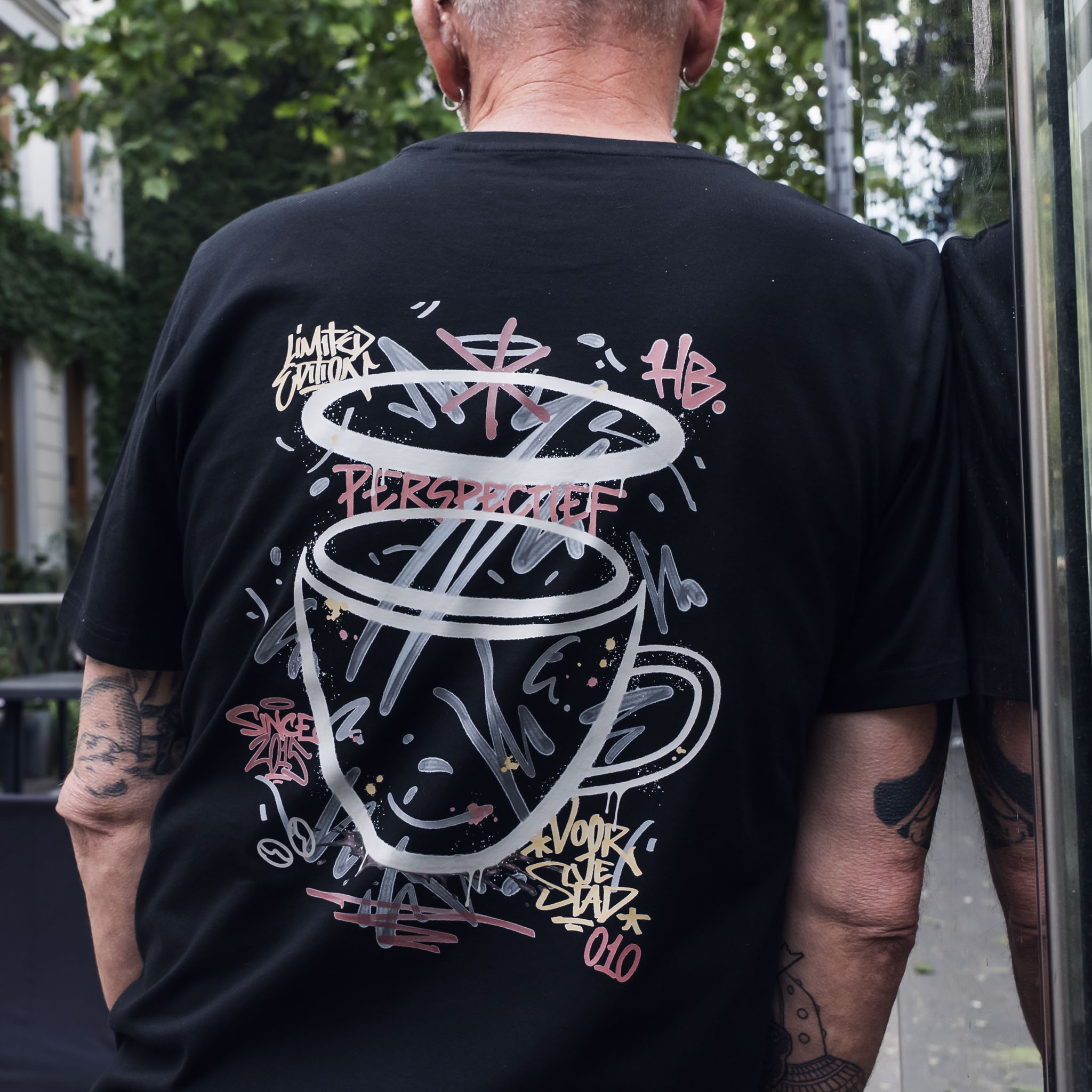Heilige Boontjes bestaat tien jaar. Tien jaar waarin talloze jongeren de kans hebben gekregen om opnieuw perspectief te vinden en mee te draaien in de maatschappij. Dat is een prestatie die gevierd mag worden – en die vraagt om iets bijzonders. Het shirt, officieel de Heilige Boontjes X RDAM® ‘Perspectief Editie’, is een ode aan die missie.