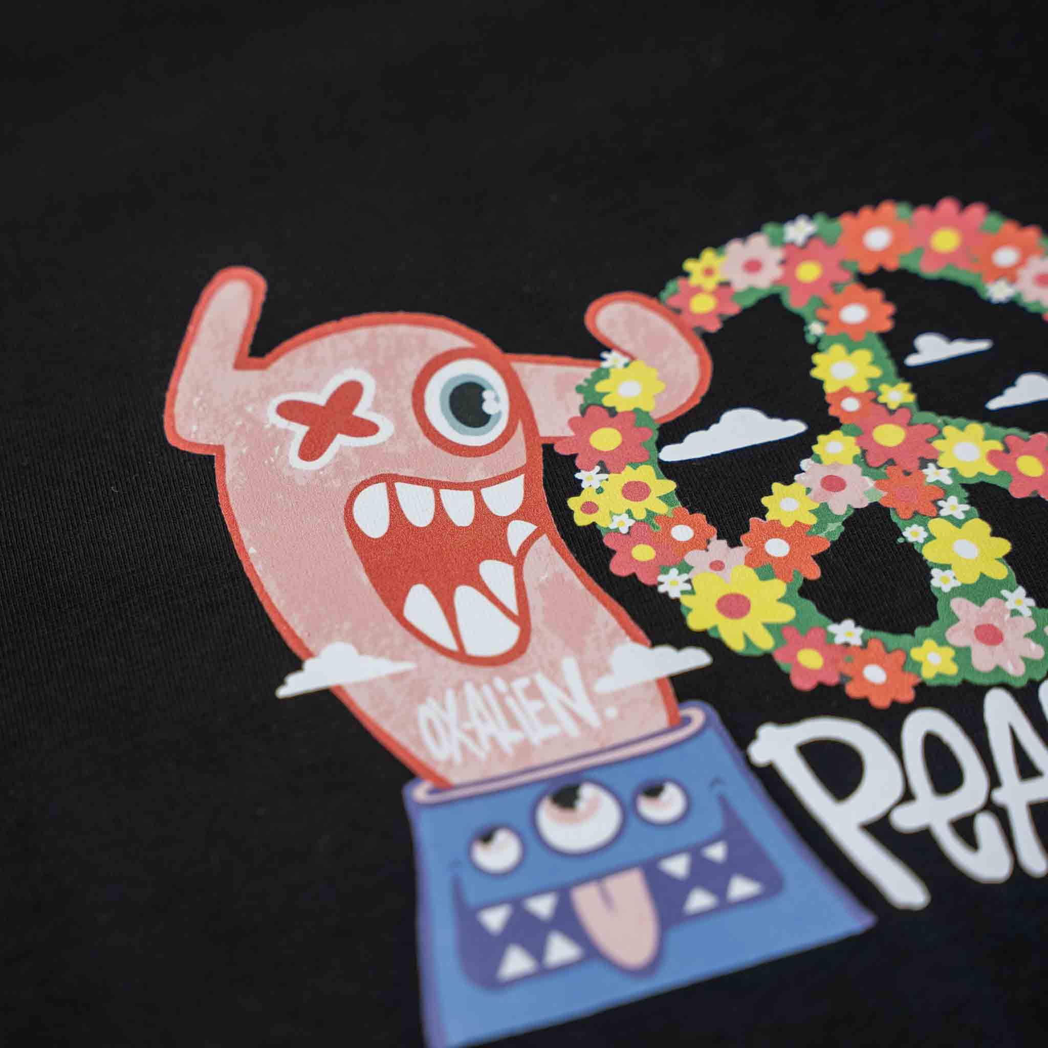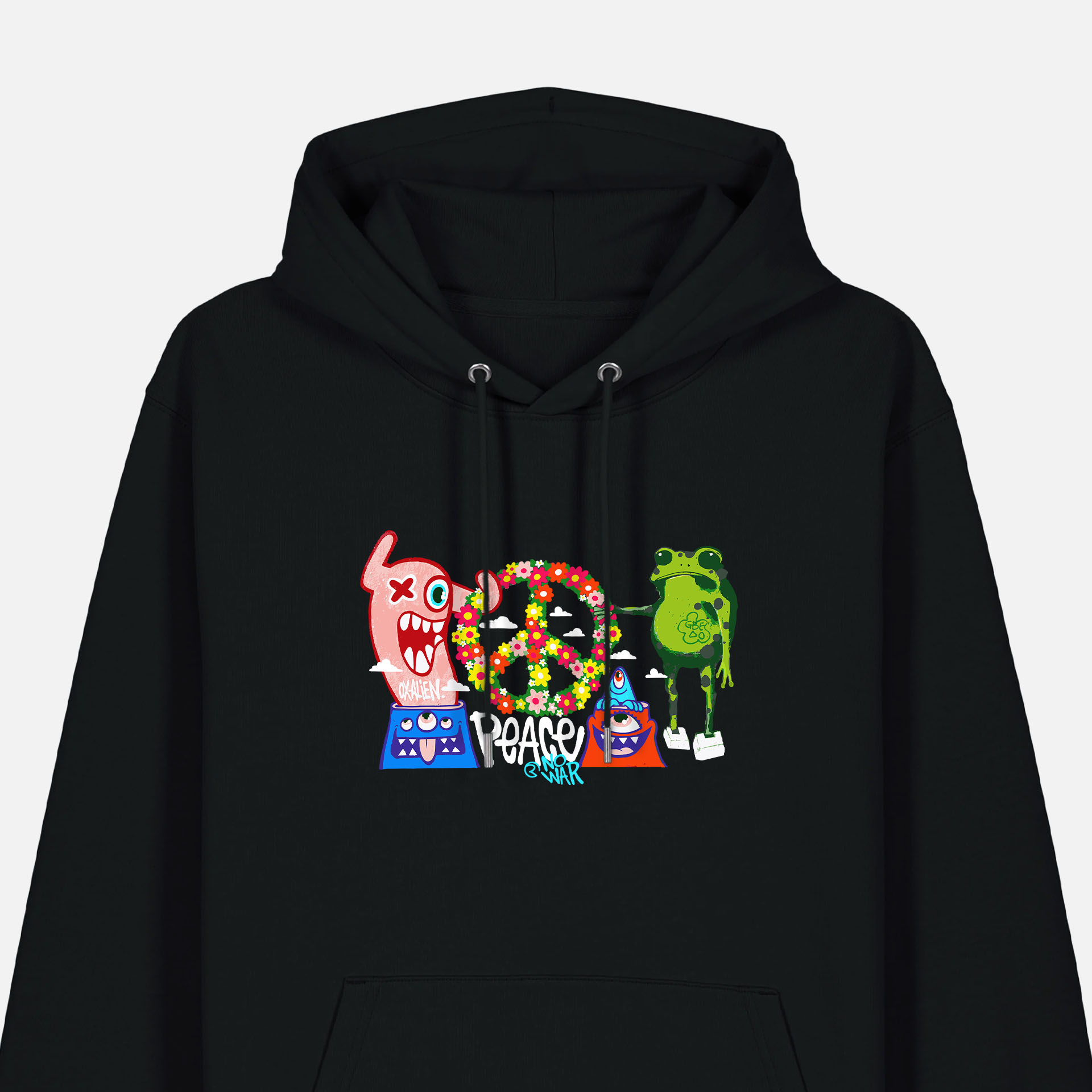 Peace, no war is ontstaan uit een samenwerking tussen Oxalien en GBEDO Art. Twee kunstenaars met verschillende stijlen en achtergronden die elkaar vonden in dezelfde creatieve energie en visie.